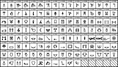 Por orden de aparición, TUN, BIG Y EQU. En la imagen que os pongo no aparecen los nombres de los ideogramas, que os recuerdo que son las primeras letras de su equivalente en latín, sino su nombre en UNICODE. Lo he tenido que sacar de internet porque temporalmente no estoy en casa y no tengo cerca mis amados libros de micénico…